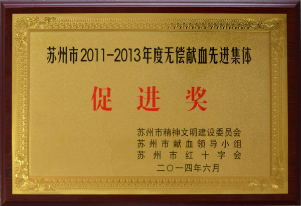 蘇州市2011-2013年度無(wú)償獻(xiàn)血先進(jìn)集體