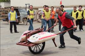 首先通過教練帶動(dòng)大家熱身活動(dòng)和趣味游戲,讓團(tuán)隊(duì)成員放松自己,彼此熟悉、信任,又把隊(duì)伍分成了銳進(jìn)隊(duì)、陽光隊(duì)、野狼隊(duì)、太陽隊(duì)、火箭隊(duì)、猛龍隊(duì)六個(gè)小分隊(duì),讓每個(gè)分隊(duì)自己推選出自己隊(duì)伍的隊(duì)長(zhǎng)、隊(duì)秘和工兵,并在隊(duì)長(zhǎng)的帶領(lǐng)下逐一展示出自己隊(duì)伍的隊(duì)名、隊(duì)標(biāo)和對(duì)歌,讓大家銘記自己團(tuán)隊(duì)精神,在一天的時(shí)間里在專業(yè)教練的指導(dǎo)下分別完成了穿越沼澤地、呼吸力量、獨(dú)輪車、急速傳遞、多人多足五個(gè)拓展項(xiàng)目,經(jīng)過各隊(duì)的團(tuán)隊(duì)配合和全力奮進(jìn),最后太陽隊(duì)獲得了一等獎(jiǎng),猛龍隊(duì)獲得了二等獎(jiǎng),銳進(jìn)隊(duì)、陽光隊(duì)、野狼隊(duì)和火箭隊(duì)獲得了三等獎(jiǎng)。